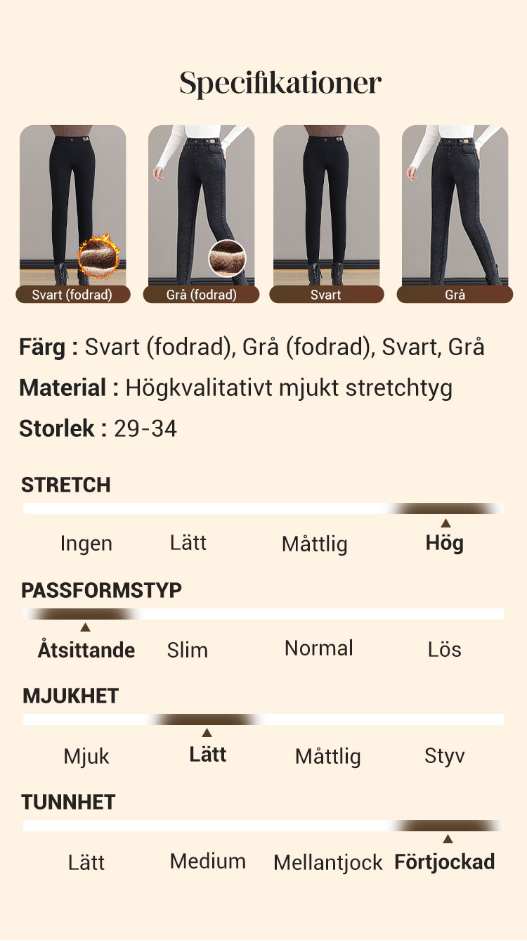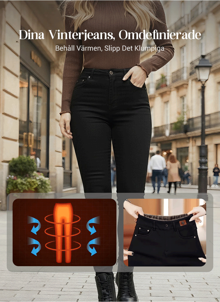 Kvinnors höga midja smala stretch varma magra jeans