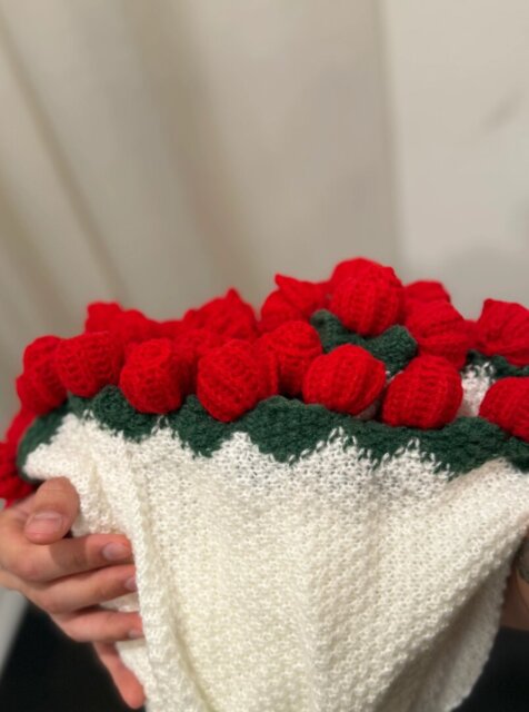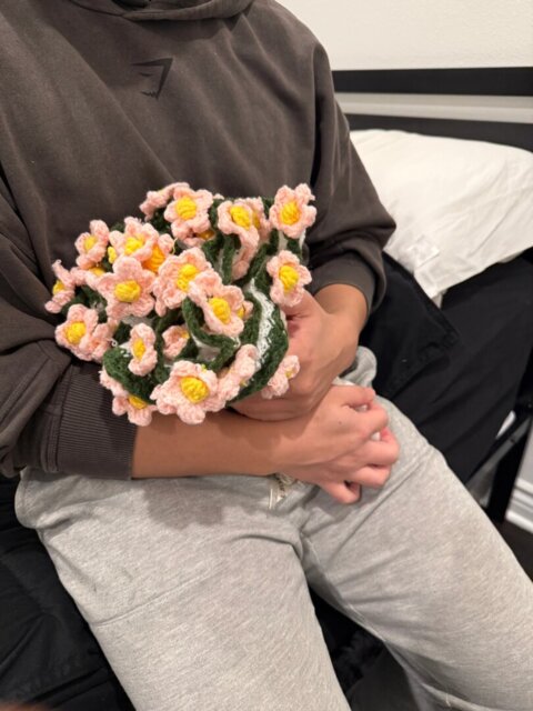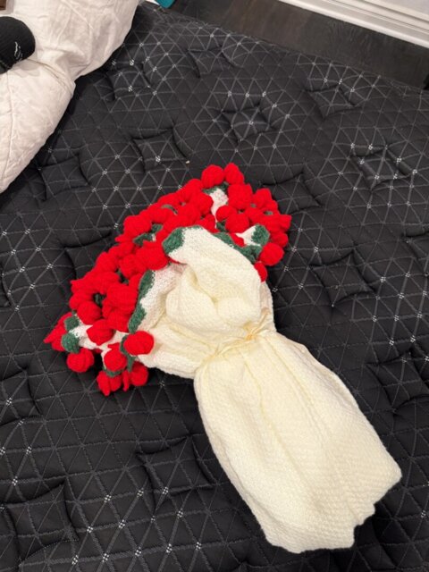 Such a creative gift. It’s soft, cozy, and honestly looks even better than flowers.